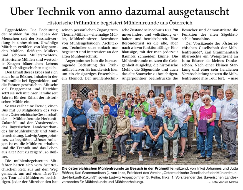Unsere Mühlenexkursion 2025 fand vom 11. bis 13. Juli 2025 statt und führte uns nach OÖ und ins benachbarte Bayern.